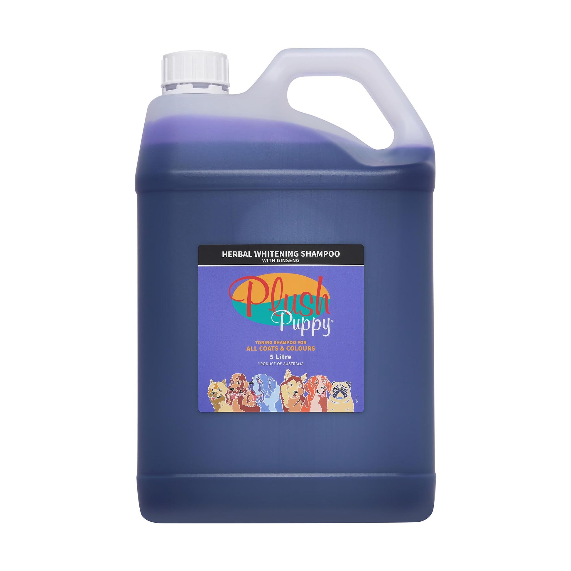 Plush Puppy® Herbal Whitening Shampoo is primarily derived from organic sources with Ginseng extracts, protein, and a violet tone combined in a rich formula that works brilliantly to whiten whites and intensify darker colours.