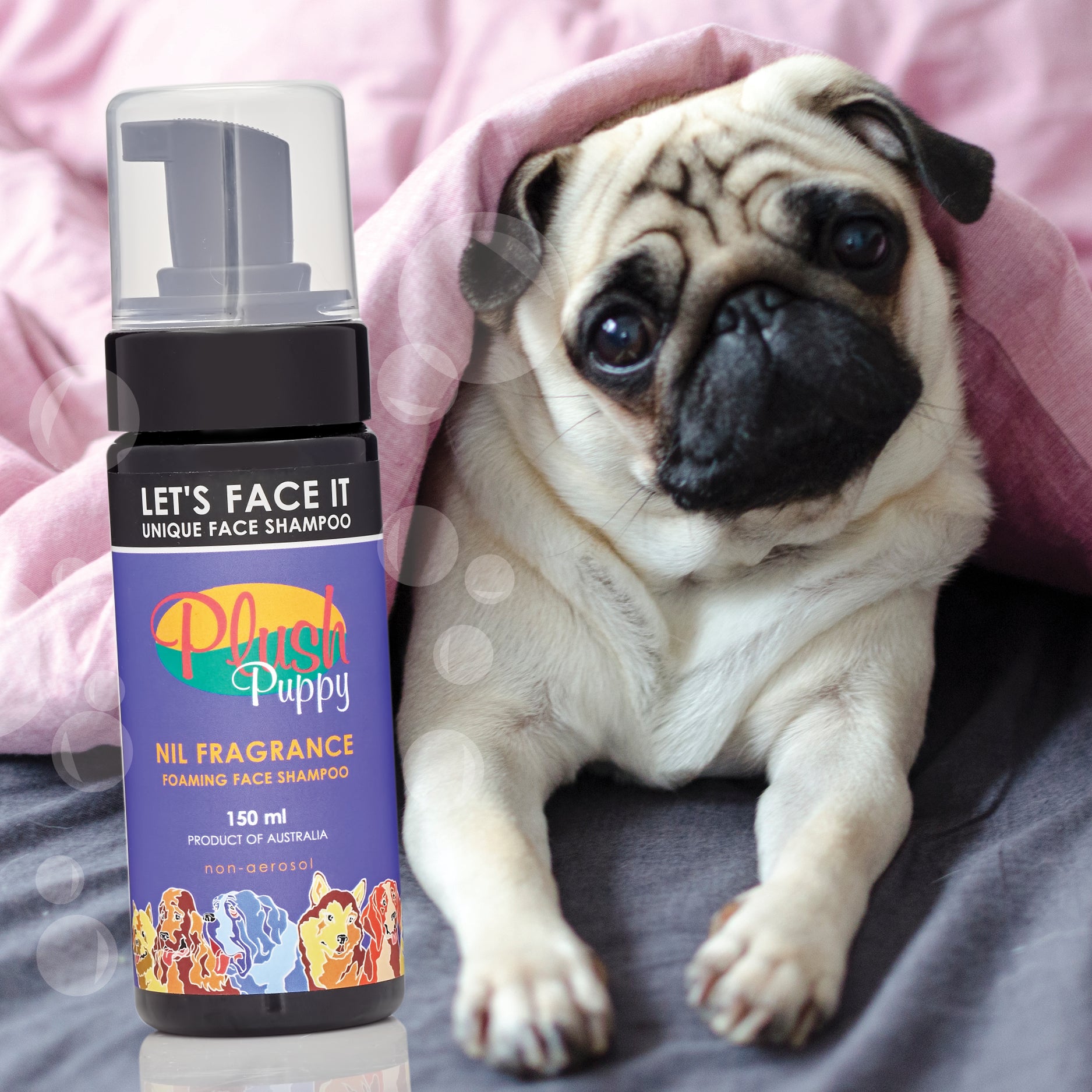 Plush Puppy Let's Face It – Plush Puppy's Hypoallergenic, Sulfate-free low foaming shampoo is custom made just for faces. Our gentle NO TEAR, NO FRAGRANCE formula will not sting or irritate the eyes.
